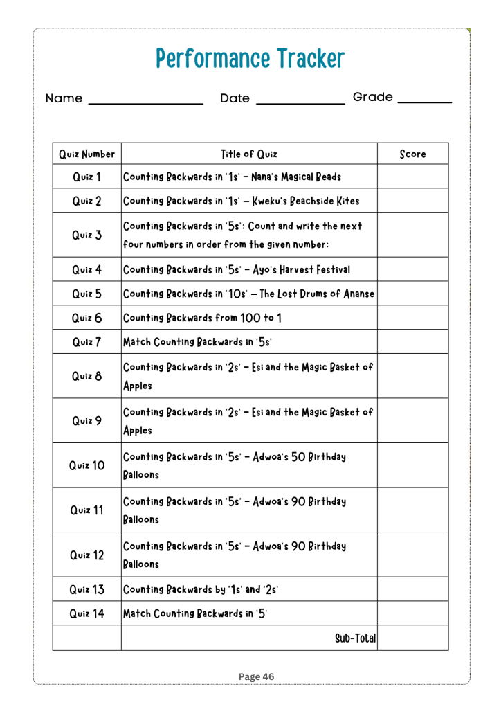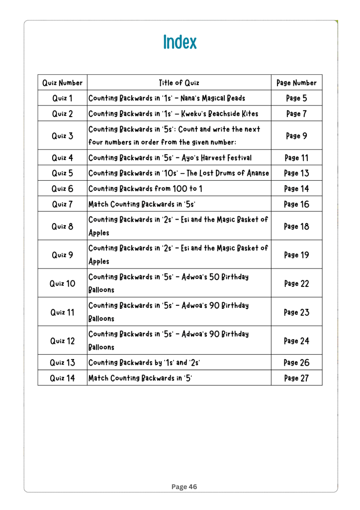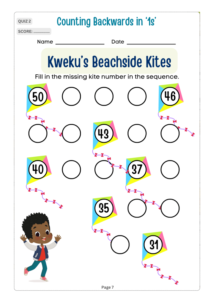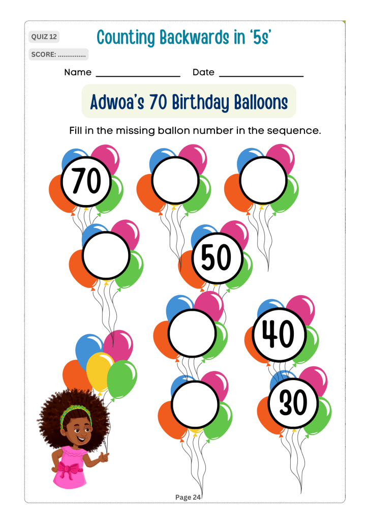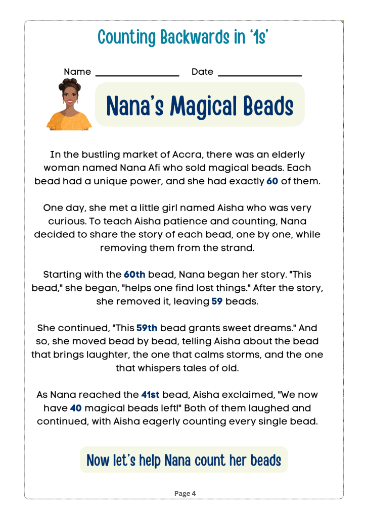 Counting Adventures: Backwards and By Steps is an engaging and educational book designed for children in grades 1 to 3. The book introduces young readers to the concepts of counting backwards and skip counting in an entertaining and interactive way. It draws on relatable themes from African culture to teach young learners in African educational institutions how to count backwards and by steps for two and three-digit numbers by tens, fives, twos and ones.